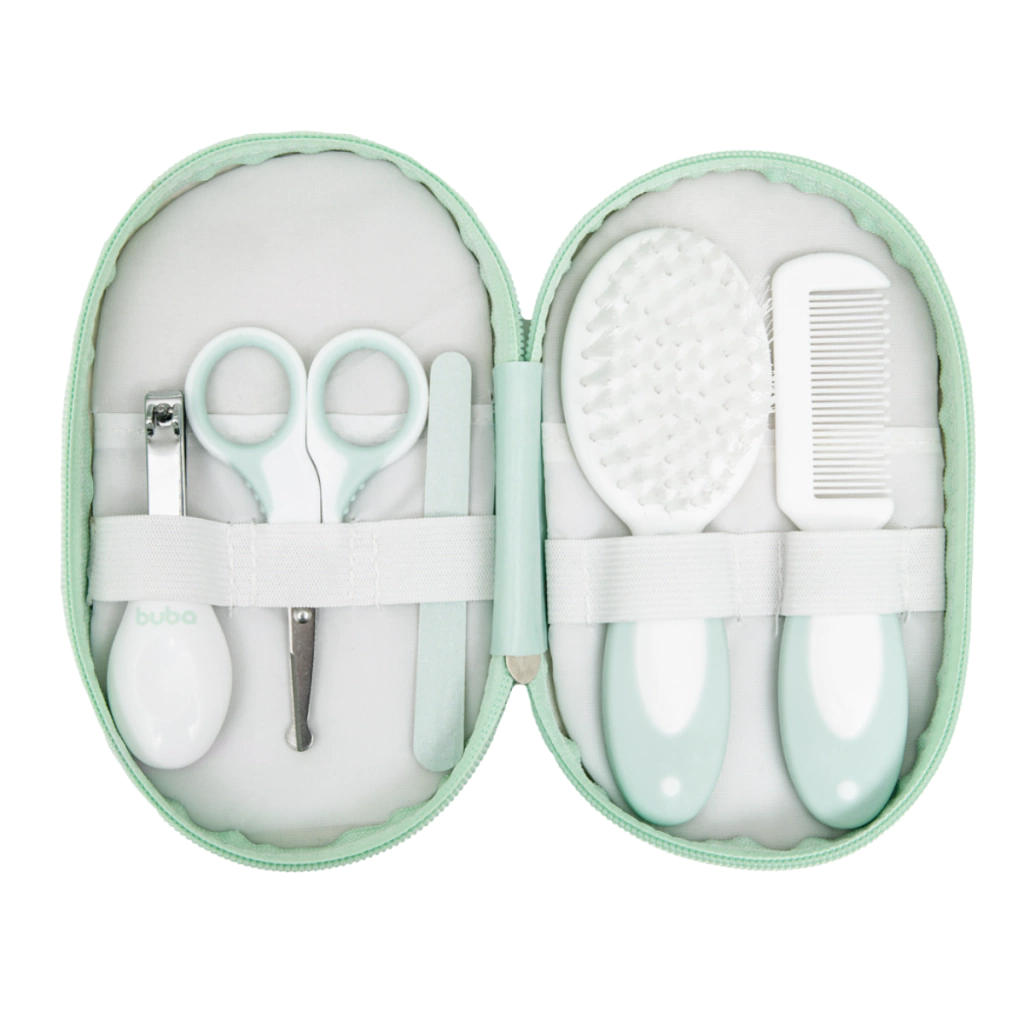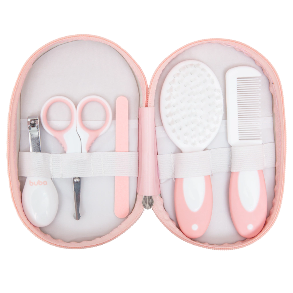 O Kit Cuidados da Buba foi desenvolvido para cuidar com delicadeza e segurança dos pequenos. Possui tesoura, com pontas arredondadas, cortador de unhas, pente, escova, lixas e um estojo super prático para armazenar e transportar nas em viagens.